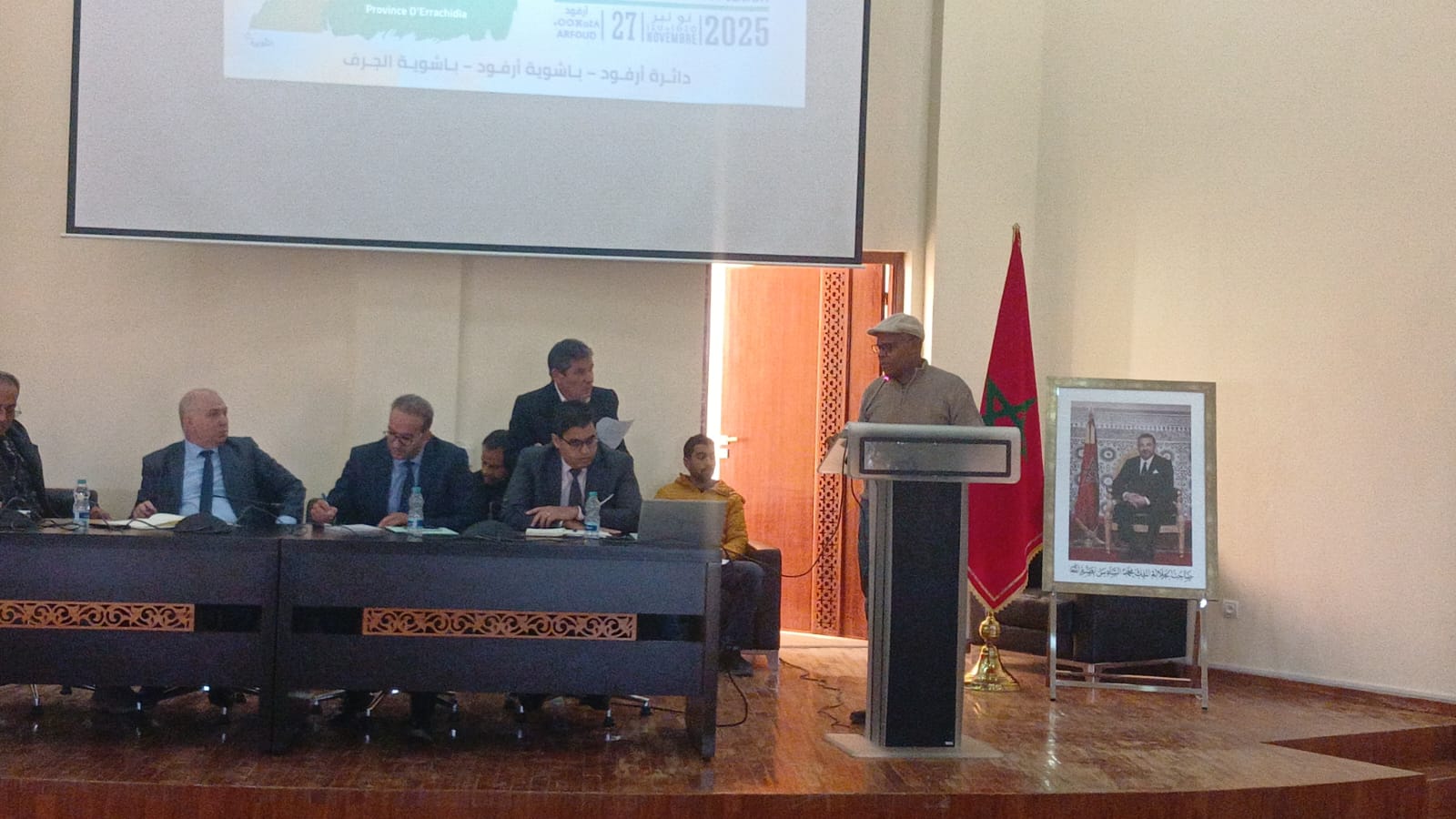 افتتحت الجلسة بكلمة السيد رئيس دائرة أرفود، الذي أعلن انطلاق أشغال اللقاء مؤكدا أهمية إشراك الفاعلين المحليين في تحديد الأولويات وصياغة رؤية تنموية مندمجة تراعي خصوصيات المجال الواحي.