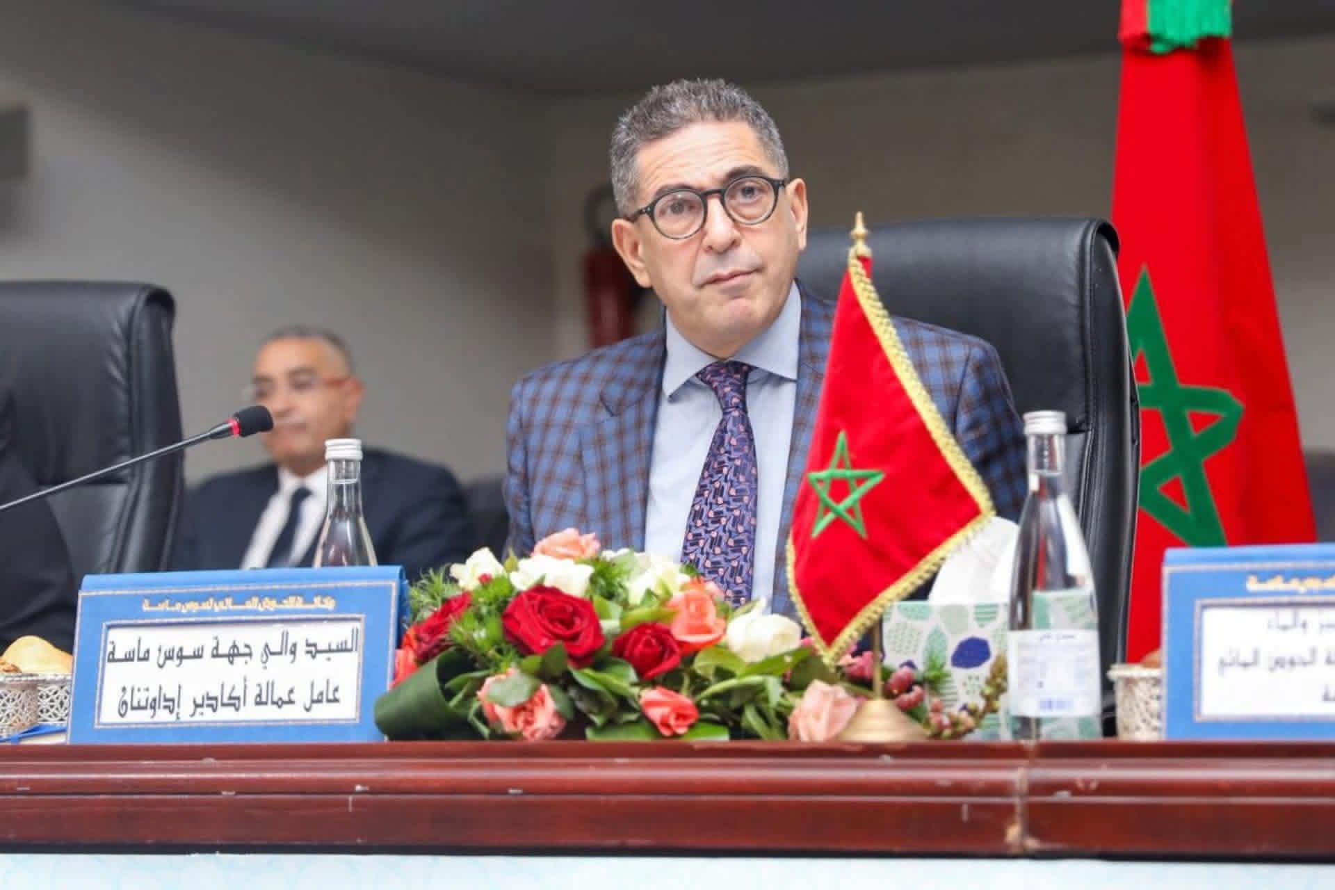و من جهته أكد الوزير أن انعقاد هذا المجلس يأتي في سياق وطني إيجابي، تميز بتسجيل تساقطات مطرية مهمة بجهة سوس ماسة بعد سبع سنوات متتالية من الجفاف، حيث قاربت كمية الأمطار 120 ملم في بعض الدواوير، ما يبشر ببداية سنة هيدرولوجية واعدة. وأضاف أن هذه التساقطات أسفرت عن واردات مائية مهمة فاقت 370 مليون متر مكعب على مستوى سدود الجهة في ظرف وجيز.وفي هذا الإطار، جدد نزار بركة التأكيد على انخراط الحكومة في تنفيذ التوجيهات الملكية السامية لصاحب الجلالة الملك محمد السادس، خاصة المتعلقة بالتفعيل الأمثل للبرنامج الوطني للتزويد بالماء الشروب ومياه السقي 2020-2027، الذي يهدف إلى ضمان التزويد المنتظم بالماء الصالح للشرب، وتأمين ما لا يقل عن 80 في المائة من الحاجيات المائية المخصصة للسقي، إلى جانب مواصلة بناء السدود وتسريع مشاريع نقل المياه بين الأحواض، وتطوير محطات تحلية مياه البحر لتعبئة أكثر من 1,7 مليار متر مكعب سنويًا في أفق 2030.