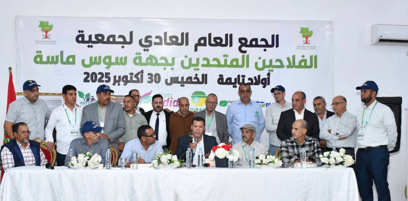 شهدت قاعة أمين بقلب مدينة أولاد تايمة يوم أمس الخميس 30 أكتوبر 2025 حدثاً بارزاً في المشهد الفلاحي بجهة سوس ماسة، حيث تم بالإجماع تجديد الثقة و انتخاب السيد أحمد بونعمة رئيساً لجمعية الفلاحين المتحدين بجهة سوس ماسة ، و هي خطوة تعكس الثقة الكبيرة التي يحظى بها من طرف الفلاحين والفاعلين في القطاع.