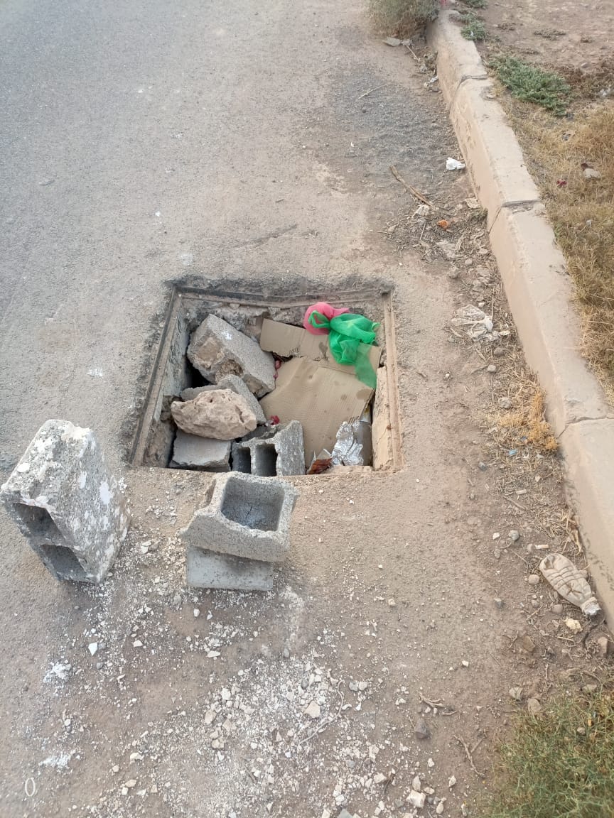 سرقة الحواجز الحديدية الخاصة بتصريف مياه الامطار “الزيگوات” تهدد سلامة المواطنين