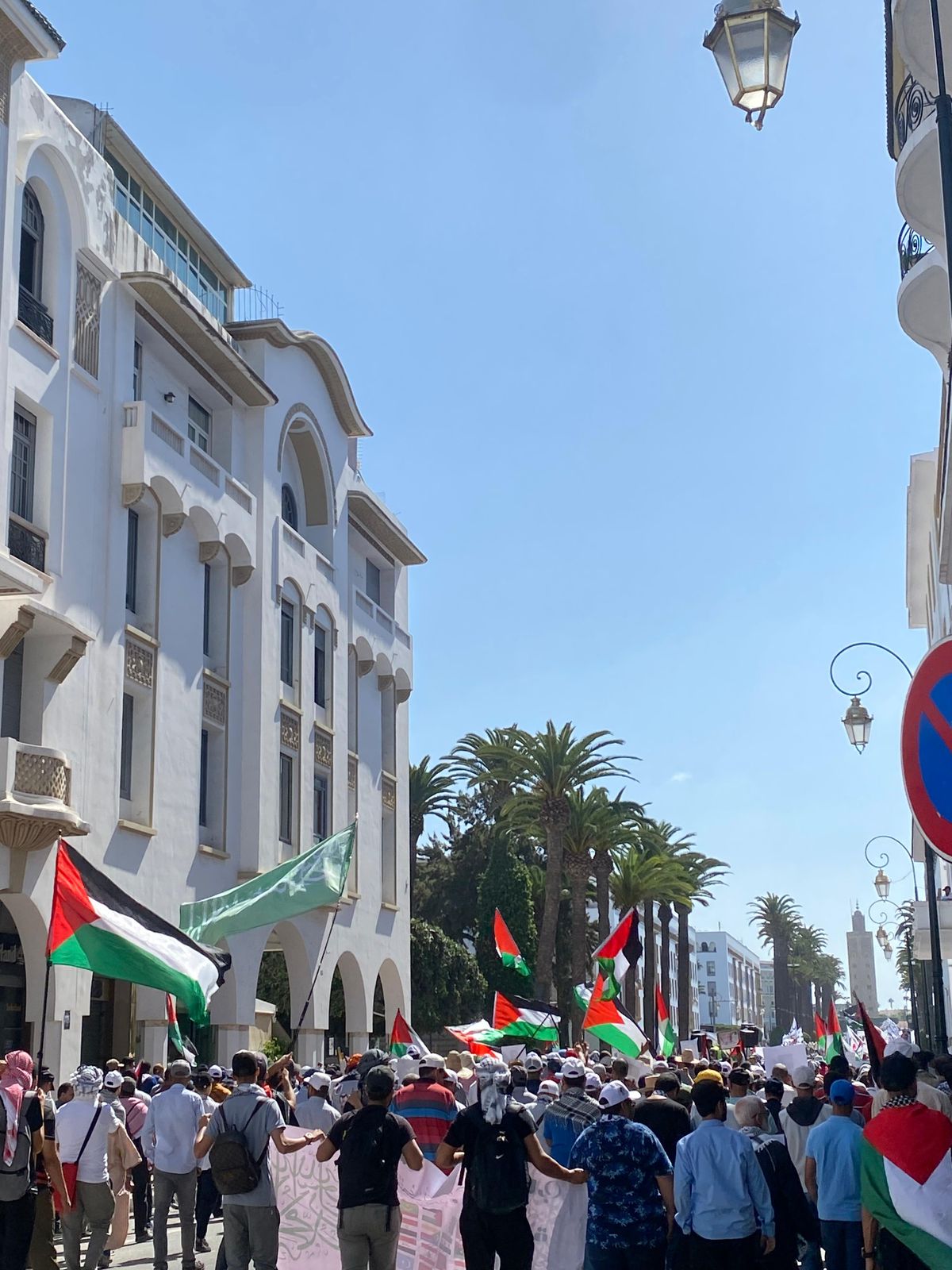 عرفت الرباط اليوم الأحد، مسيرةً تضامنية حاشدة مع سكان قطاع غزة، رفع خلالها المشاركون شعاراتٍ تندد بـ”الإبادة الجماعية” التي يتعرض لها المدنيون الفلسطينيون، كما حملوا صورَ صحفيين وقادة من فصائل المقاومة الذين اغتالتهم إسرائيل في وقتٍ سابق.
