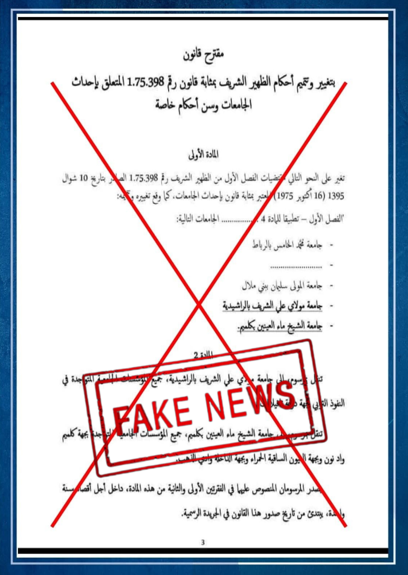 ويُذكر أن تداول الوثيقة المزيفة جاء في سياق مطالب محلية متكررة بإحداث جامعة مستقلة بكلميم، عوض تبعيتها لجامعة ابن زهر بأكادير، وأخرى بالرشيدية بدل ارتباطها بجامعة مولاي إسماعيل بمكناس