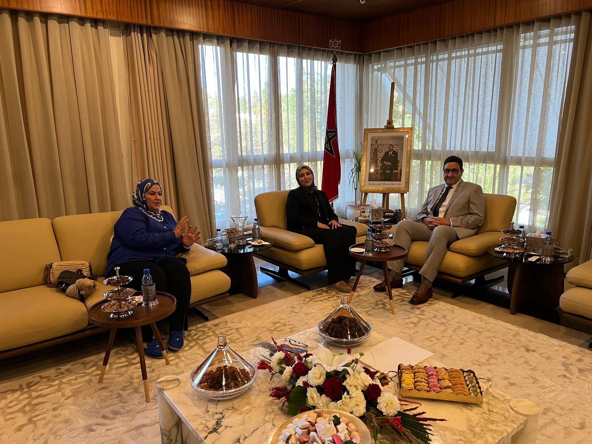 استقبل وزير النقل و اللوجيستيك السيد عبد الصمد قيوح بمقر الوزارة رئيسة المجلس الجماعي لأولاد تايمة السيدة نادية بوهدود و السيدة زينب قيوح نائب رئيس مجلس جهة سوس ماسة ، و جاء هذا اللقاء من اجل التباحث حول المشروع المقترح لإحداث المحطة الطرقية بمدينة أولاد تايمة.