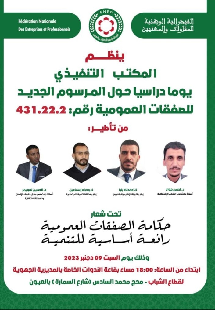يوما دراسيا حول المرسوم الجديد للصفقات العمومية رقم 431.22.2