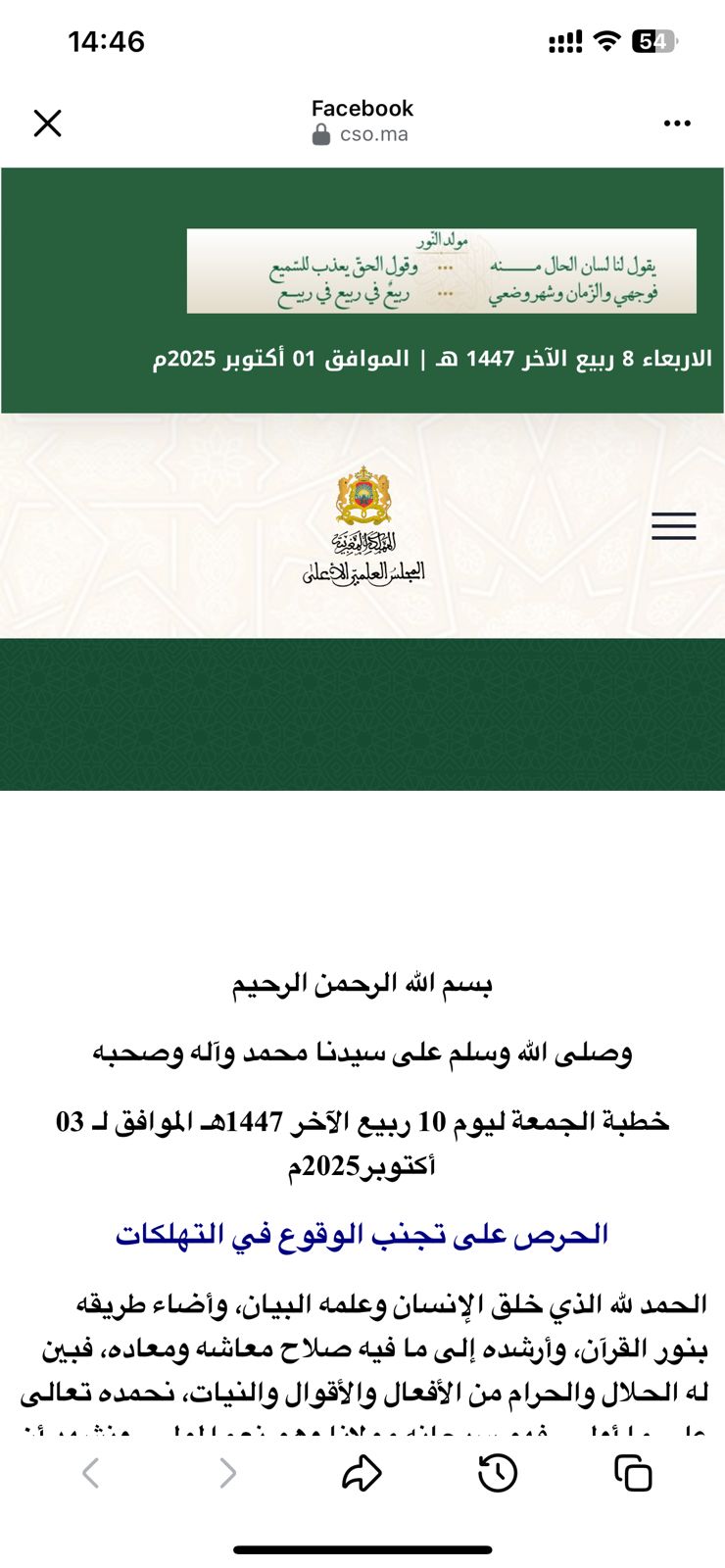 سوف توزع على جميع خطباء مساجد المملكة من أجل القائها على المصلين يوم الجمعة المقبل 03 أكتوبر 2025.