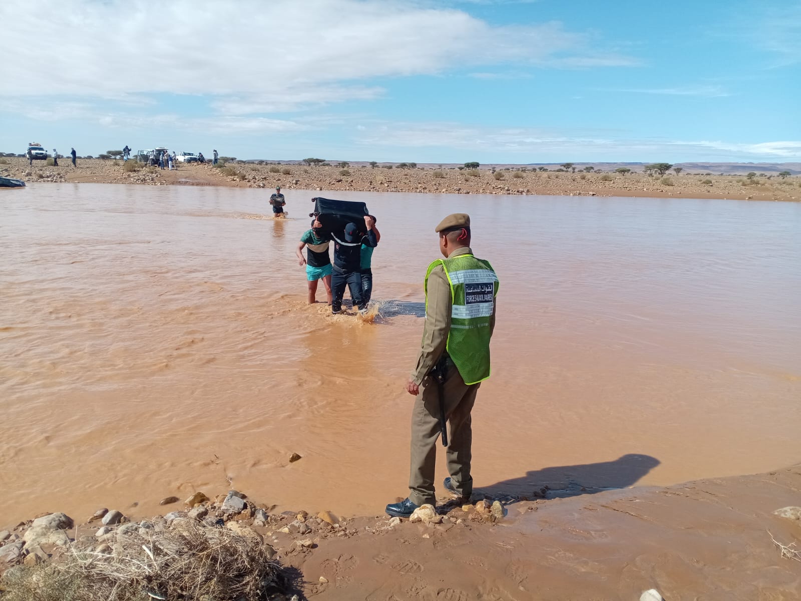 وحسب المصادر تمت عملية الإنقاذ بفضل جهود الجميع السلطات المحلية والقوات المساعدة ورجال الدرك الملكي والوقاية المدنية، الجماعة المحلية والساكنة تم إنقاذ سائق السيارة والسياح.