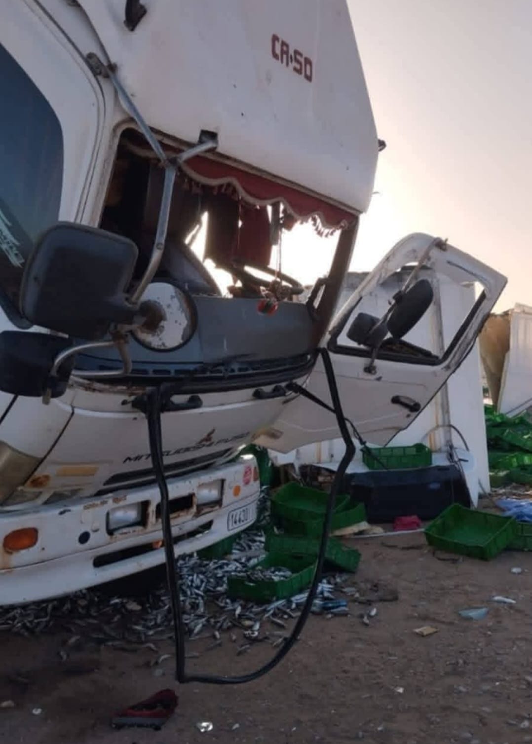 وبحسب معطيات أولية، فإن الشاحنة كانت قادمة من ميناء العيون ومحملة بكميات كبيرة من سمك السردين، قبل أن تنقلب في ظروف ما تزال قيد التحديد. وقد أسفر الحادث عن خسائر مادية كبيرة تمثلت في إتلاف الشحنة السمكية بالكامل، دون تسجيل أية خسائر بشرية.