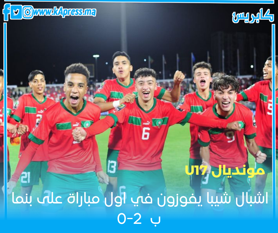 استطاع المنتخب الوطني المغربي من الفوز في اول مقابلة له ضمن مباريات المجموعة الاولى لكأس العالم U17 المقامة حاليا بأندونيسا على المنتخب البانامي بنتيجة هدفين لصفر ، وسجل الهدف الاول اللاعب سيف الدين شلاغمو خلال الشوط الاول .