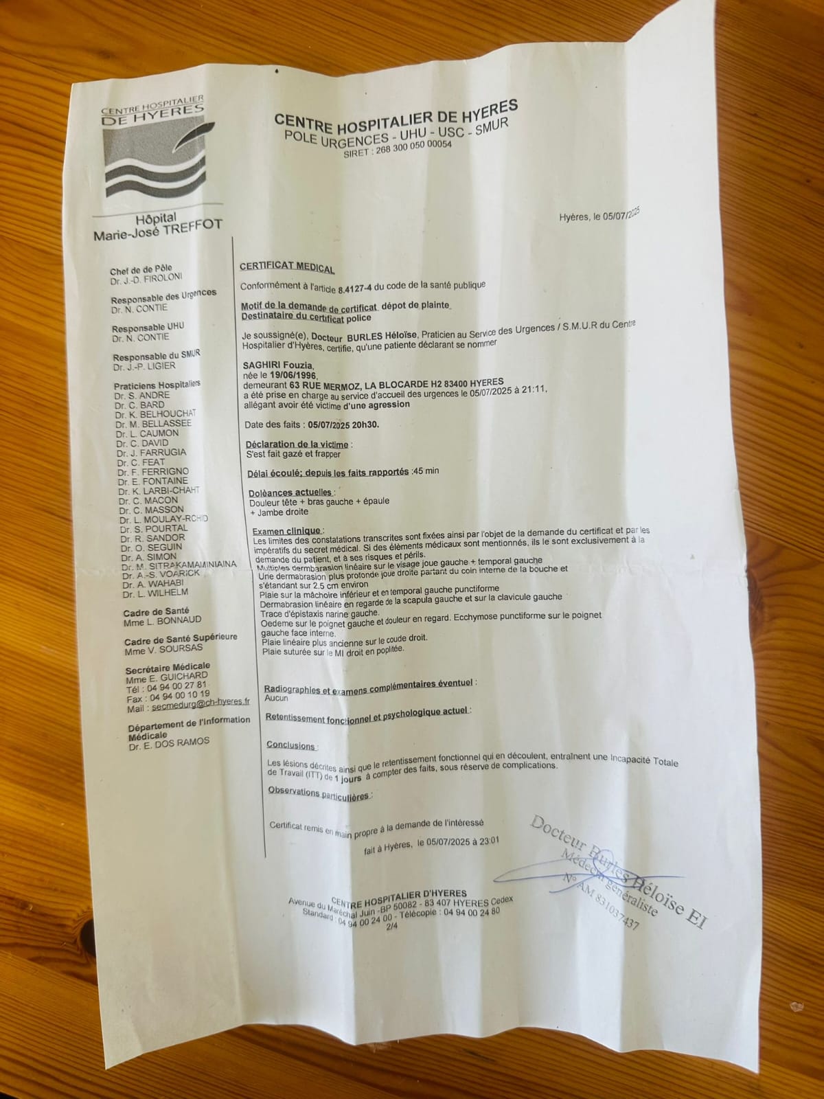 كنت تائهة في الشارع، خائفة، ليلتين وانا أنام في الشارع ..في جو بارد وبدون ماكل ومشرب..وفي الليلة الثالثة حاولت أن أجد مكان يمنحني الدفء .. وبالفعل وجدت عربة مهجورة دخلت لها بهدوء ..ونمت نوما عميقا .. في منتصف الليل أحسست احدا يلمسني نظرت له ومن شدة التعب لم اتفحصه جيدا ..كان في حالة سكر يقترب مني ..أردت أن أفلت بجلدي لكن الأمر صعب لأنهم أصبحوا أربعة رجال (Gaëtans) . حاولت الهرب لكني لم أستطع. تعرضت عندها لأسوأ ما يمكن أن تعيشه امرأة… اغتصبوني وتركوني ملقاة.