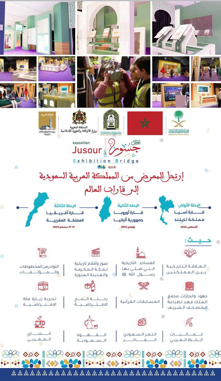 تستعدُّ وزارة الشؤون الإسلامية والدعوة والإرشاد بالمملكة العربية السعودية ونظيرتها في المملكة المغربية وزارة الأوقاف والشؤون الإسلامية لتنظيم معرض “جسور” في مؤسسة مسجد الحسن الثاني بالدار البيضاء بداية من 13 من ديسمبر الجاري، وتستمرُّ فعالياته على مدى عشرين يومً؛ إلى يوم 31 من نفس الشهر.