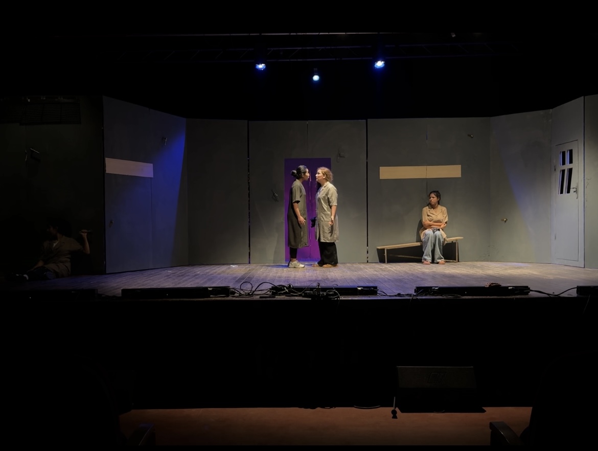 وتعرف هذه المسرحية التي تمزج بين التراجيديا والتوتر النفسي، مشاركة كل من خولة احجاوج، أمنية الشفشاوني، هاجر المسناوي، وحفصة الخال، بينما تولى عبد الفتاح عشيق مهمة إخراج المسرحية، فيما عادت مهمة التأليف لحفصة الخال، كما جرى توظيف الإضاءة والديكور لتأجيج الصراع بين الحياة والموت، والوهم والحقيقة.